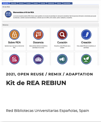 Third, because it is an OER co-created collaboratively between the libraries from REBIUN (the Spanish network of Universities Libraries), from a specific action dedicated to OER in the REBIUN repositories’ working group. It is made with contributions from different colleagues, who curated the resources in a very professional way and who also enjoyed doing it.