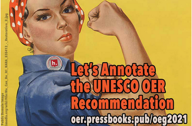 The community on OEG Connect invites the world to annotate the text of the UNESCO Recommendation on OER, in any of the six languages it is published. 5 separate annotation events act as a bridge between the September 2021 OEGlobal Online conference with the May 2022 in-person Congress in Nantes, France.