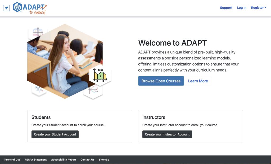 ADAPT (https://adapt.libretexts.org/) is designed as a centralized OER question bank (>150 k questions) that combines adaptive learning incorporating learning trees with culturally responsive pedagogy for advanced use. We will demonstrate how instructors can use ADAPT to augment existing and newly constructed OER textbooks with summative exercises and embed them in LMSs, LibreTexts textbooks, in a standalone web application, and in-class clickers. Learn how ADAPT empowers faculty to build and use existing questions in multiple modalities.