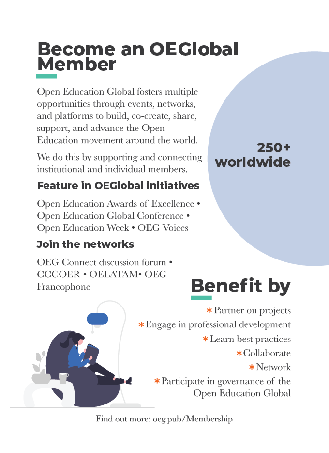 You might be starting your open education journey and still need examples. In that case, please share your motivations for joining OEGlobal on the application form.